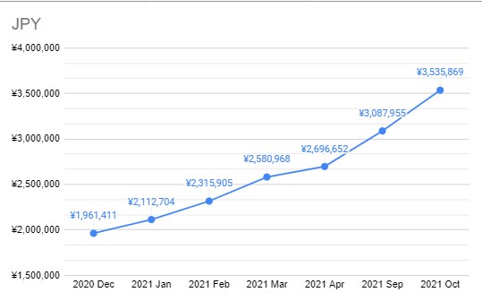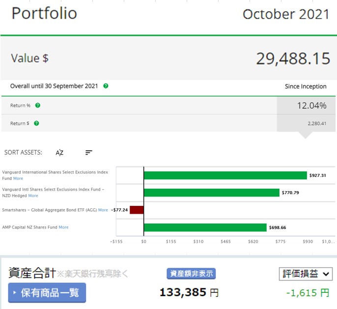 10月25日現時点で総資産353万円程。NZDで45,000程。